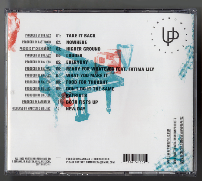 Album design and art direction for the Unknown Prophets release World Premier 2. Custom type was made and combined with rich textured photographic treatments to give this album a unique standing in the field of Hip-Hop recordings. Additionally a special Itunes digital booklet was designed for the online version of the album.